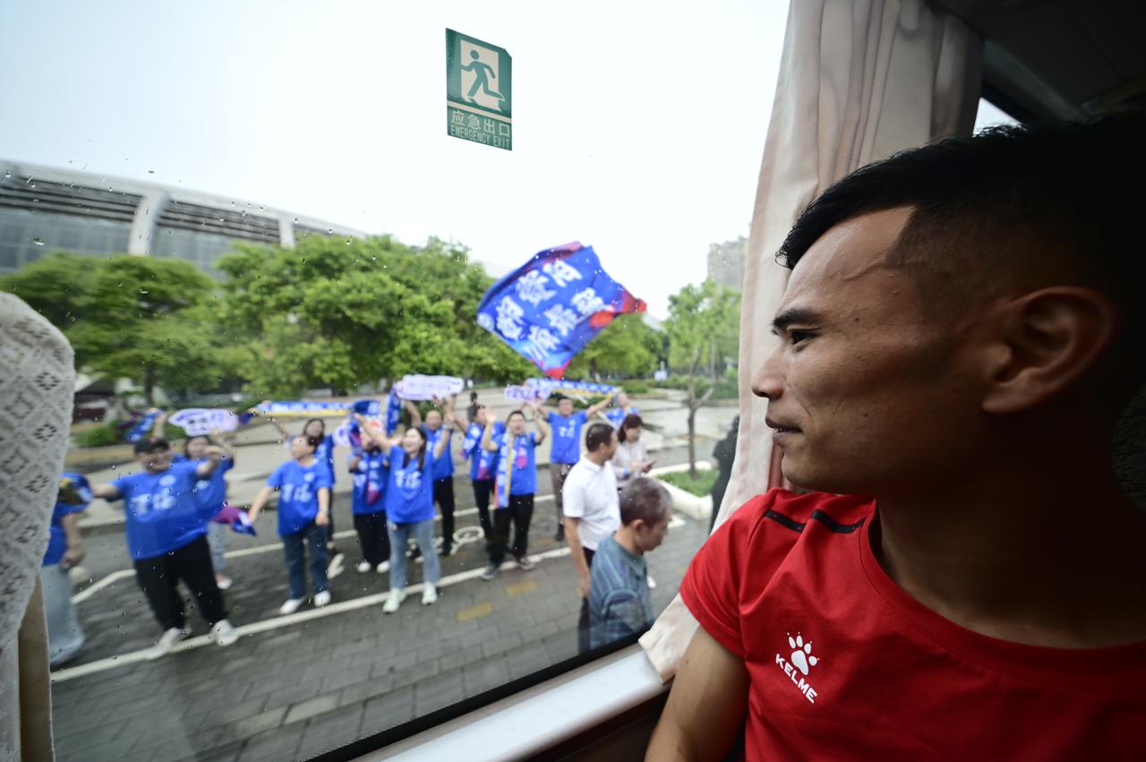 随后,球员们斗志昂扬,有序登上大巴车。车下,球迷们挥动双手、高唱战歌,目送大巴车缓缓驶离,将这份牵挂与祝福送往赛场。