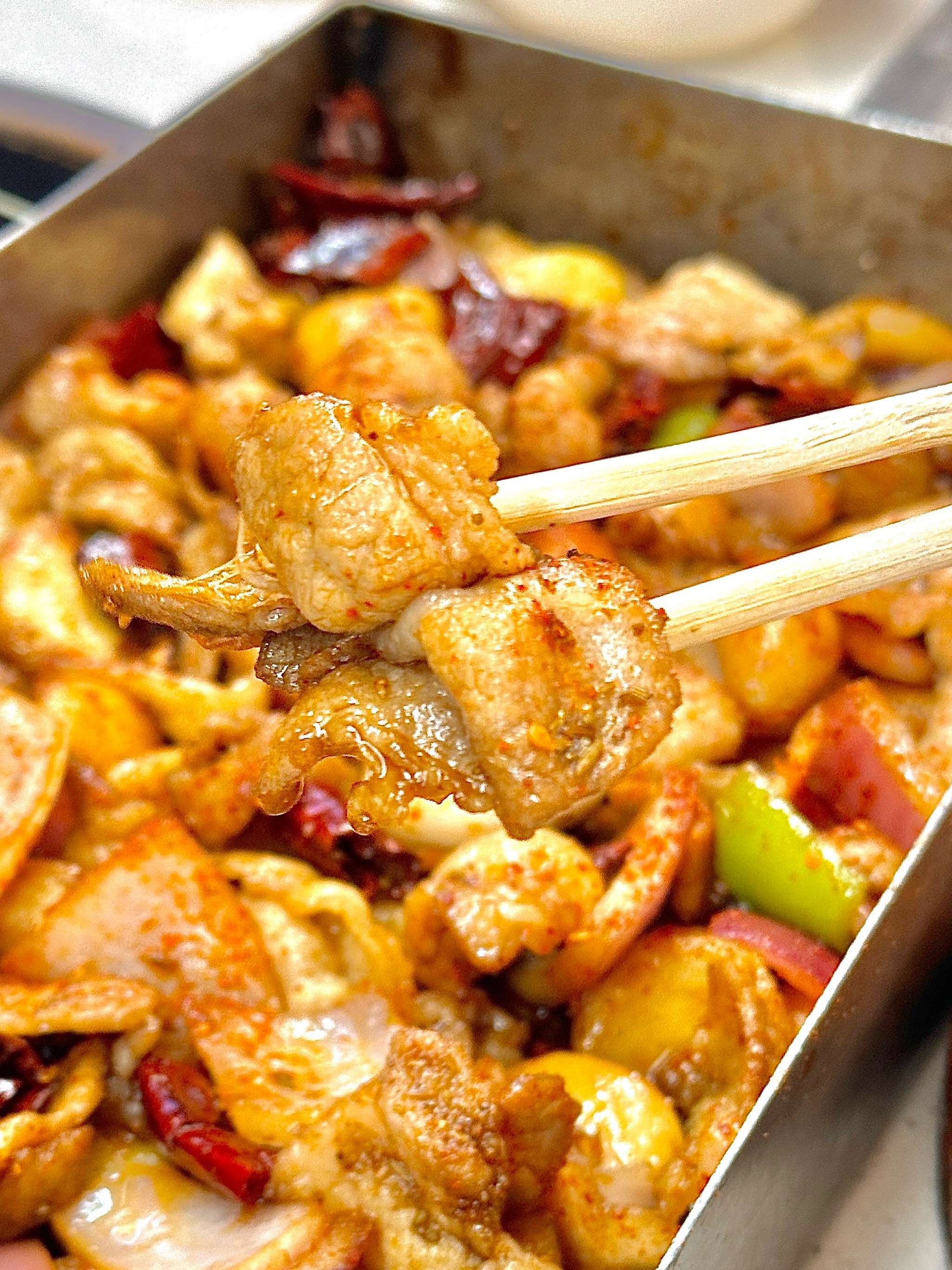 戳子肉是青岛式烤肉,“戳子”是青岛话,指带把的小铁盒。将五花肉、大虾、烤饼等食材装入,炭火烤制,调料足,味道浓。尤其是戳子大肠,是很多店铺的招牌菜。