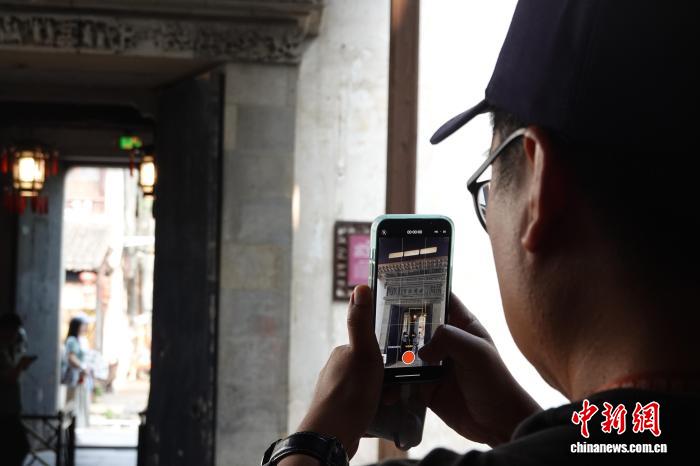 图为游人拍照打卡南浔古镇内的传统建筑。 鲍梦妮 摄