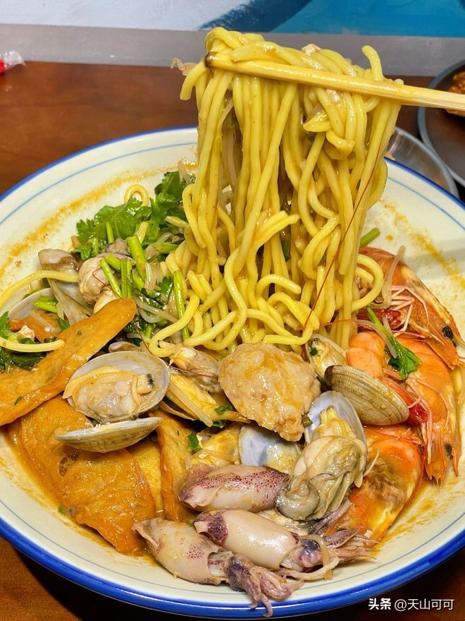 沙茶面是厦门最具代表性的美食之一,几乎成为这座城市的代名词。沙茶酱是这道美食的灵魂,它由花生、虾米、大蒜、辣椒等多种食材炒制研磨而成,香气浓郁,口感微辣带甜。一碗地道的沙茶面,面条劲道,配料丰富,常见的有猪肝、鱿鱼、虾仁、豆腐等,再淋上浓郁的沙茶汤,让人回味无穷。在厦门,几乎每条街都能找到沙茶面的身影,其中以“月华沙茶面”和“乌糖沙茶面”最为有名,每天清晨就排起长队,足见其受欢迎程度。