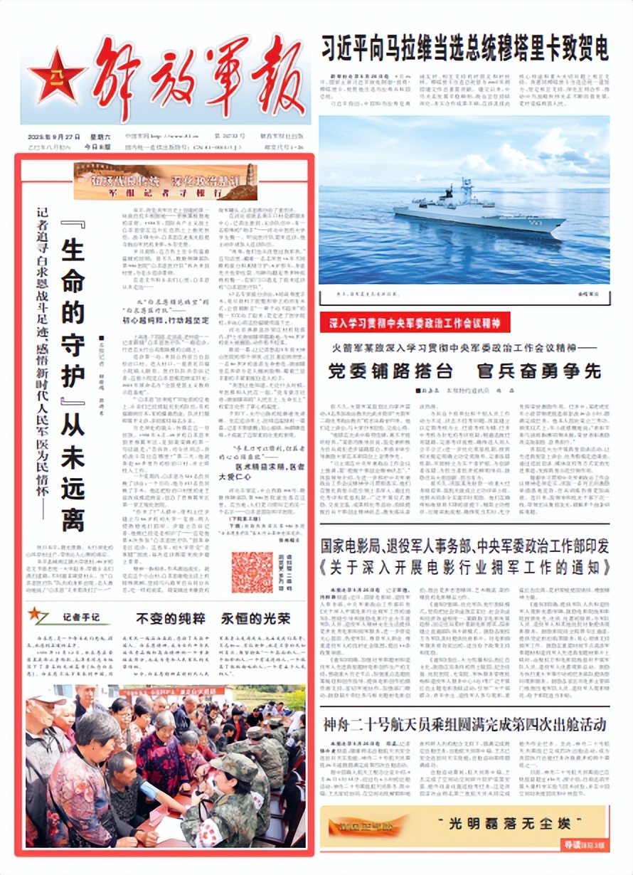 记者手记不变的纯粹 永恒的光荣白求恩,是一个每当我们想起、提及,就感到温暖的名字。1939年11月12日,白求恩在晋察冀战场以身殉职,毛泽东同志为他写下了著名的光辉篇章《纪念白求恩》。白求恩不远万里来到中国,同我军民一起浴血奋战,感动了无数中国人。白求恩精神,成为当代中华民族优秀品格和高尚精神的一个重要组成部分,也成为党和人民军队的光荣传统。如今,白求恩精神在新时代人民军医身上发扬光大,也启发我们思考:不忘初心、牢记使命,就是不管时代如何变迁,都坚持做“一个高尚的人,一个纯粹的人,一个有道德的人,一个脱离了低级趣味的人,一个有益于人民的人”。▽本文刊于9月27日《解放军报》01版