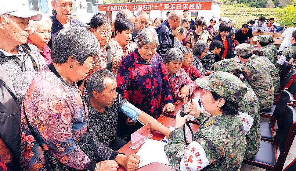 秋日阜平,晨光熹微。太行深处的山风穿村过户,带来沁人心脾的清凉。阜平县城南庄镇大岸底村,80岁的老支书张思亮一大早起来,带着乡亲们清扫道路,不时翘首凝望村头。当“白求恩医疗队”队员的身影出现,老人激动地说:“‘白求恩’又来看我们了……”阜平,我党我军历史上创建的第一块敌后抗日根据地——晋察冀根据地的首府。1938年,国际共产主义战士白求恩曾在这片红色热土上救死扶伤。战斗烽火中,白求恩在龙泉关招提寺救治军民的身影,永存史册。岁月流转,这方热土至今传递着温暖的回响。前不久,联勤保障部队第980医院“白求恩医疗队”再次来到村里,为老乡巡诊看病。在老支书和乡亲们心里,白求恩从未走远……从“白求恩模范病室”到“白求恩医疗队”——初心越纯粹,行动越坚定上高速、下国道、走县道、进村道……记者跟随“白求恩医疗队”一路巡诊,行进在太行山沟壑纵横的山路上。巡诊第一站,来到山西省五台县松岩口村。进入村口,一座青瓦石墙小院映入眼帘。医疗队队员告诉记者,这座小院是白求恩模范病室旧址,2021年被命名为“全国爱国主义教育示范基地”。“‘白求恩’回来啦!”旧址前的空地上,乡亲们已经排起长长的队伍,有的揣着病历本,有的攥着药盒。队员们随即展开义诊,亲切接待每名乡亲。历史深处的镜头,仿佛在这一刻回放。1938年6月,48岁的白求恩来到晋察冀军区,见到聂荣臻的第一句话就是:“告诉我,司令员同志,我的战斗岗位在哪里?”第二天,他就奔赴60多里外的松岩口村,并立即投入工作。一个星期内,白求恩为521名伤员做了诊治;一个月内,他为157名伤员做了手术。他还把松岩口村里的龙王庙改成模范病室,创办了晋察冀军区第一家正规化医院。“你来了!”人群中,骨科主任步建立与86岁的刘大爷一见面,两人便熟稔地打招呼。步建立告诉记者,他俩已经是老相识了——这是他第8次参加“白求恩医疗队”到革命老区巡诊。这些年,刘大爷常受“老寒腿”困扰,每次巡诊都要来找步建立看看。精神一脉相承,作风源远流长。就是在这个小山村,白求恩谢绝生活上的特殊照顾,坚持与八路军官兵同甘共苦,吃一样的饭菜。聂荣臻送来缴获的敌军罐头,白求恩都分给了重伤员。在河北省唐县黄石口村党群服务中心,记者注意到,义诊队伍中,有一名特殊的“助手”——河北中医药大学学生甄一。听说医疗队要来巡诊,他主动申请加入巡诊队伍。“再难,他们也从没想过放弃我。”这句话里,藏着一名名军医16年不间断的接力和真情守护:8岁那年,身患先天性脊柱裂、马蹄内翻足等多种疾病的甄一,在家门口遇见了前来巡诊的“白求恩医疗队”。17名专家接力诊治,8场高难度手术,用尽骨科下肢整形矫正的所有术式,让曾被断言“一辈子站不起来”的甄一不仅站了起来,更走进了医学院校,并决心将这份温暖传递下去。河北省涞源县孙家庄村的院落内,护士长唐丽娜单膝跪地,为90多岁的张大娘擦脸,动作格外轻柔。眼前一幕,让记者想起5年前火神山医院的那个深夜:红区重症病房里,一名80多岁的患者生命垂危,唐丽娜坐在床旁为老人擦拭脸颊,戴着三层手套的手紧紧握住老人的手。“我想让他知道,无论什么时候,军医都和人民在一起。”没有豪言壮语,唐丽娜却将“人民至上、生命至上”的誓言化作了掌心的温度。夕阳下,太行山脉的轮廓愈发清晰。坐在巡诊车上,回味这温情的一幕幕,记者不禁感慨:初心接续,如群峰连绵,才成就了这厚重而壮美的景观。