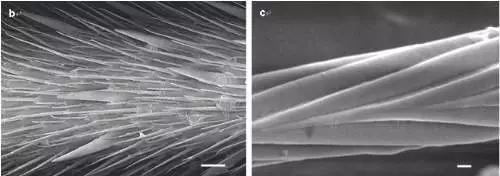 我国学者中科院化学所研究员江雷和博士生高雪峰在国际顶级学术期刊《自然》杂志上发表论文,揭示了水黾“水上轻功”的奥秘。水黾之所以能够浮在水面,其腿部特殊的微纳米结构才是真正原因,水黾腿部上有数千根按同一方向排列的多层微米尺寸的刚毛。人的头发的直径大约在80-100微米之间,而这些像针一样的微米刚毛的直径不足3微米,表面上形成螺旋状纳米结构的构槽,吸附在构槽中的气泡形成气垫,阻碍了水的浸润,这种性质称为超疏水性。正是这种超疏水性让水黾能够在水面上行动自如。