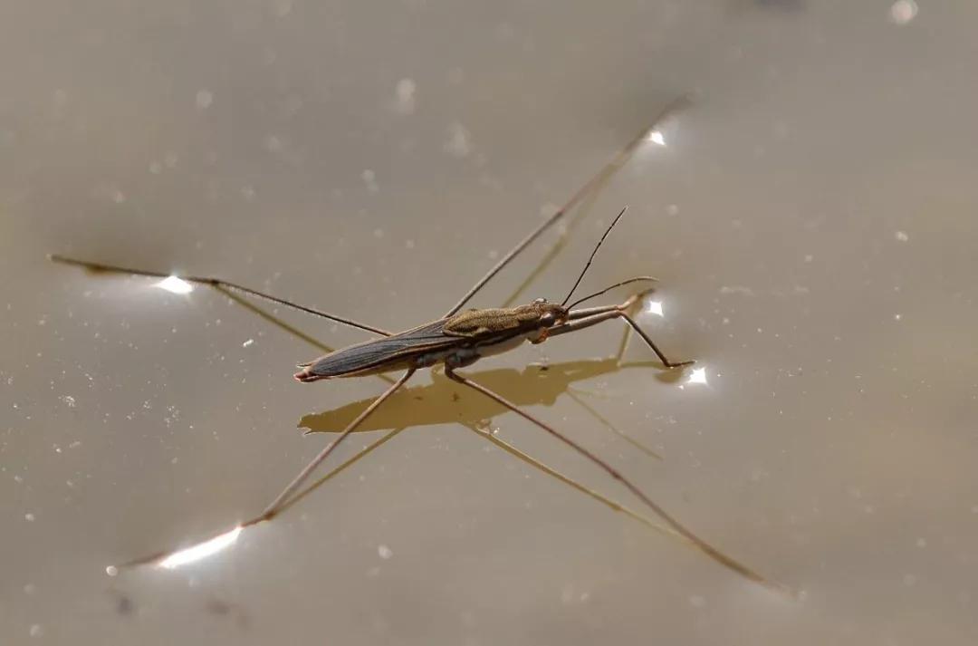 大千世界,无奇不有。自然界的众多生灵,经过长期的进化发展,产生了对环境和生活方式等的特殊适应,水黾就是其中的一个代表。水黾属于昆虫纲半翅目黾蝽科。身材修长,动作轻盈;3对足,前足短,用来捕食,中足和后足细长,长着具有油质的细毛,具有防水作用,用来跳跃和划水。我们在一些武打小说影视作品中看到的武林高手施展水上漂功夫,在水面上快速滑行,这只是文艺创作,和水黾比起来,只能是小巫见大巫。水黾不仅可以在水面自由自在的快速滑行,还能做出自由滑冰运动员的跳跃动作,它是如何练就水上绝世神功的呢?