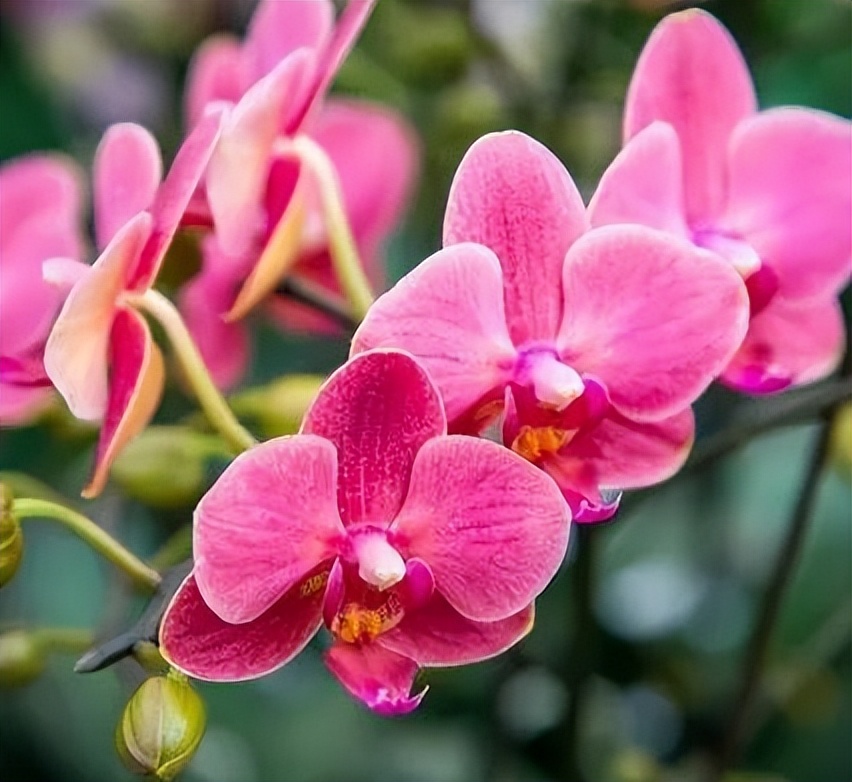 蝴蝶兰是去年过年买的,白花花开了三个月,朋友来了都说是假花。它不用土,泡水苔就能活,得放阴凉处。有回忘喷水了根有点干,赶紧泡盆水里救回来,现在又冒出花苞了。