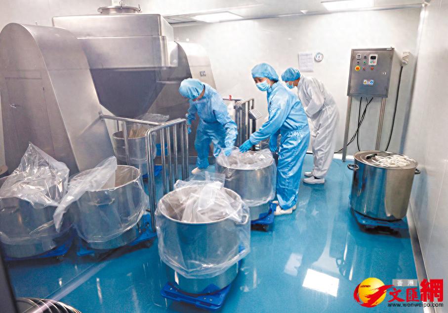 ●太和洞药厂厂房有严格卫生规定。图为药厂的外包装生产线。 香港文汇报记者郭木又 摄