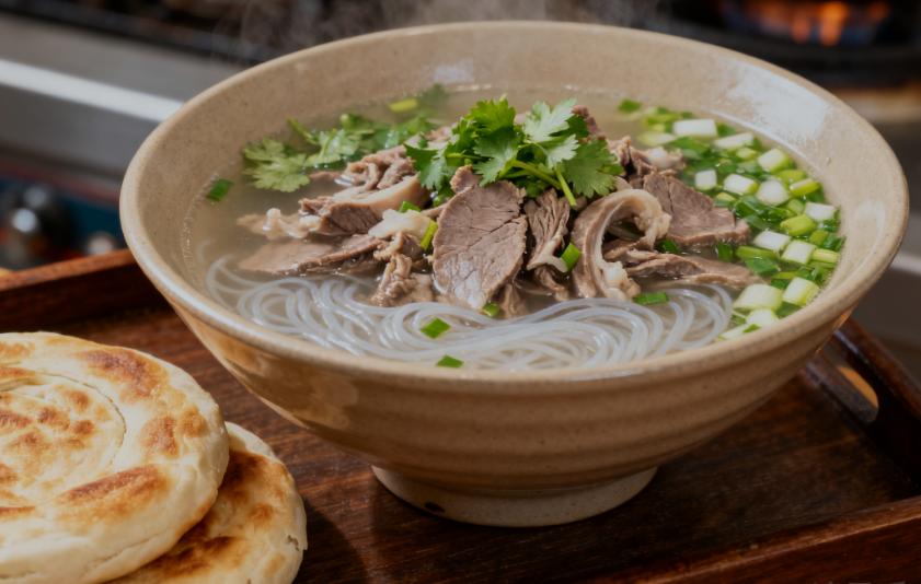 制作过程:- 熬羊肉汤:选用带骨羊肉,冷水下锅焯出血沫,加入葱姜、花椒小火慢炖2小时