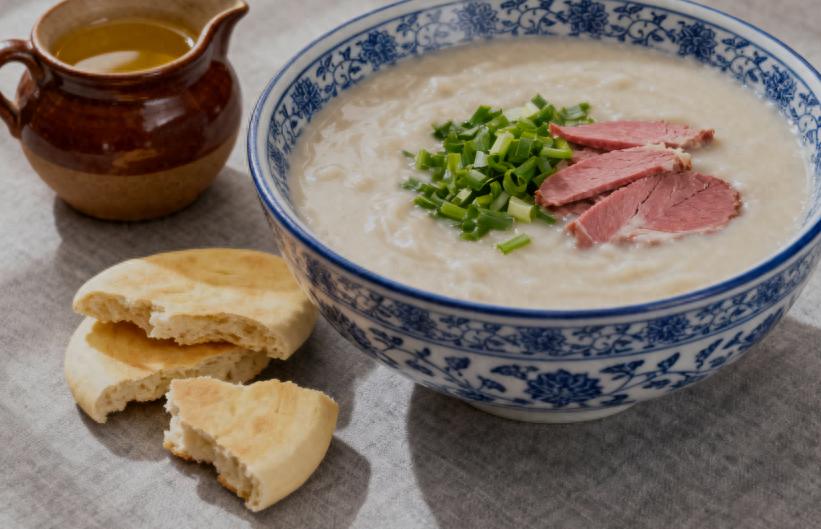 - 混合熬煮:羊肉汤烧开后加入面粉糊,不断搅拌至粘稠,最后放入山药泥和莲藕丁