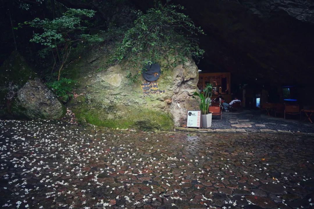 点上一杯咖啡,坐在洞口边,看桐花纷纷扬扬飘落,或落在岩石上,或装饰在咖啡杯旁,这独有的“桐花咖啡”视觉景观,让人不禁沉醉其中,仿佛时间都慢了下来。
