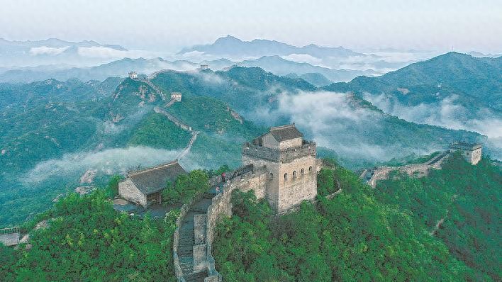 2. "意境上的优美:" 云雾缭绕的长城,层次丰富,色彩变幻,如同精心绘制的山水画。