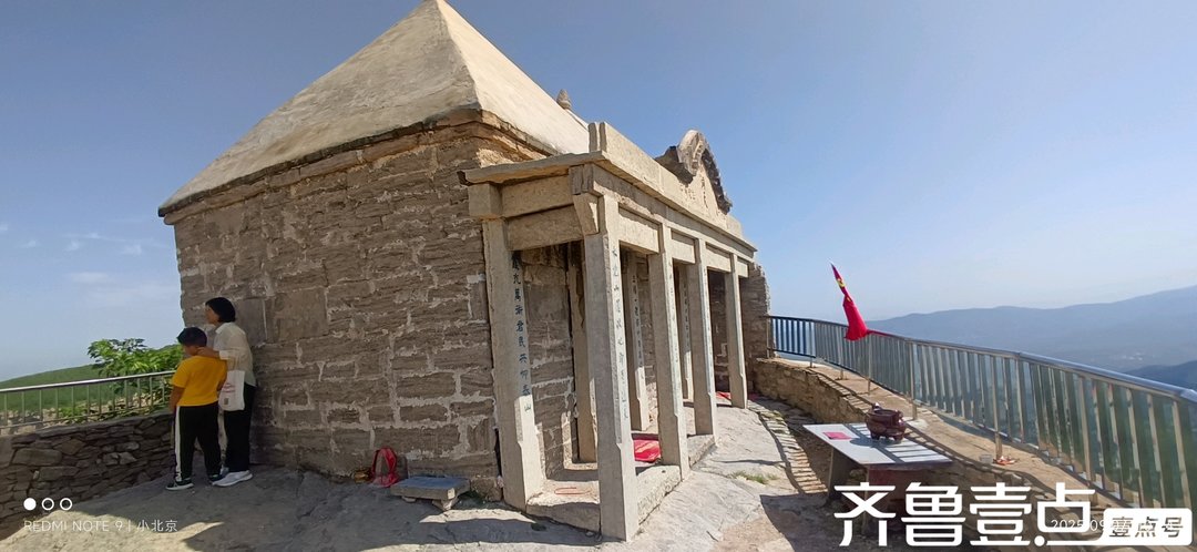 小泰山就在眼前。登山的五十八级台阶犹如一块很陡的大搓衣板铺在那里。第一次来这里还是从长清区双泉镇,几乎一路蜿蜒盘旋拔高上来的,真有点泰山十八盘感觉呢。看着几十米绝壁上的两座尖顶寺庙确实有些令人望而生畏。小泰山山门宽1.36米,高1.84米,深1.57米,石条砌成,门额刻“碧霞宫”三个字。