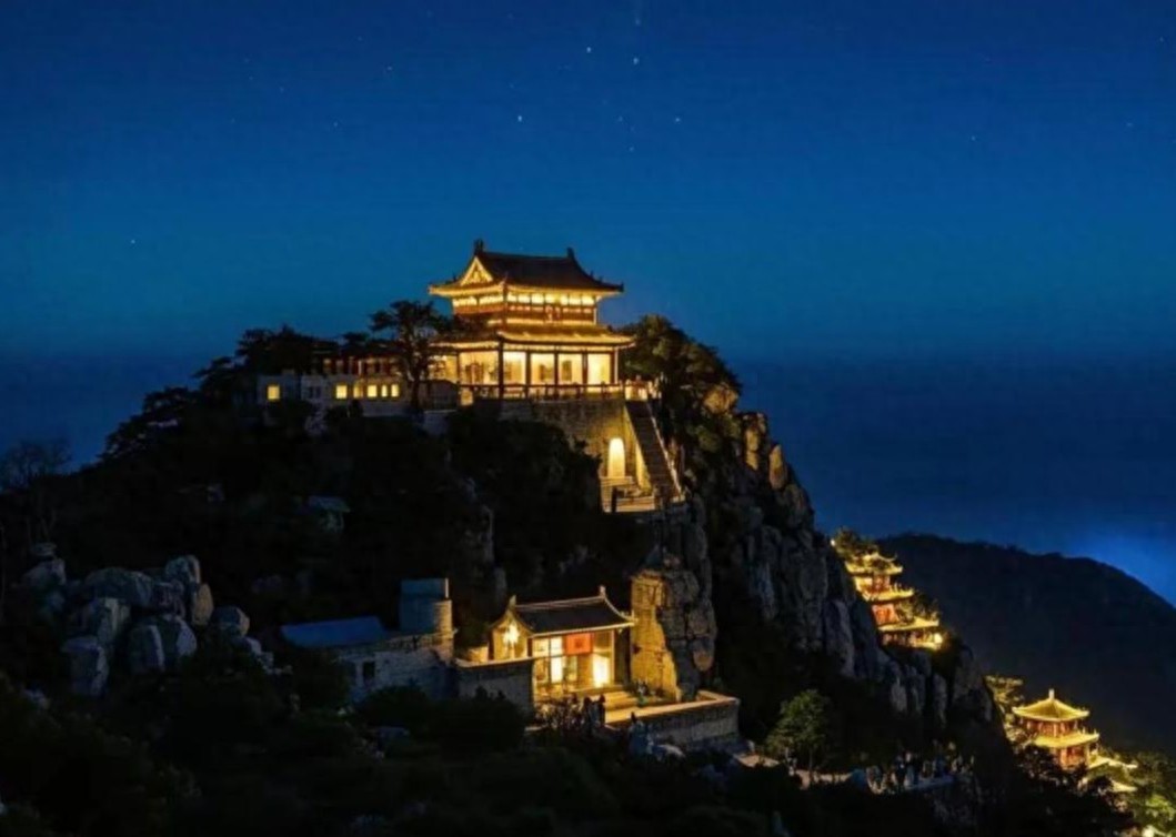 还有一段时间,我和朋友坐在山顶的台阶上畅聊,山风吹拂,身体微凉,这是炎炎夏日难得的一份惬意。山下是泰安市的万家灯火,从山顶俯瞰城市,极似在飞机上俯瞰地面。《孟子》云:“登泰山而小天下”,其所形容的想必也是这种场景。