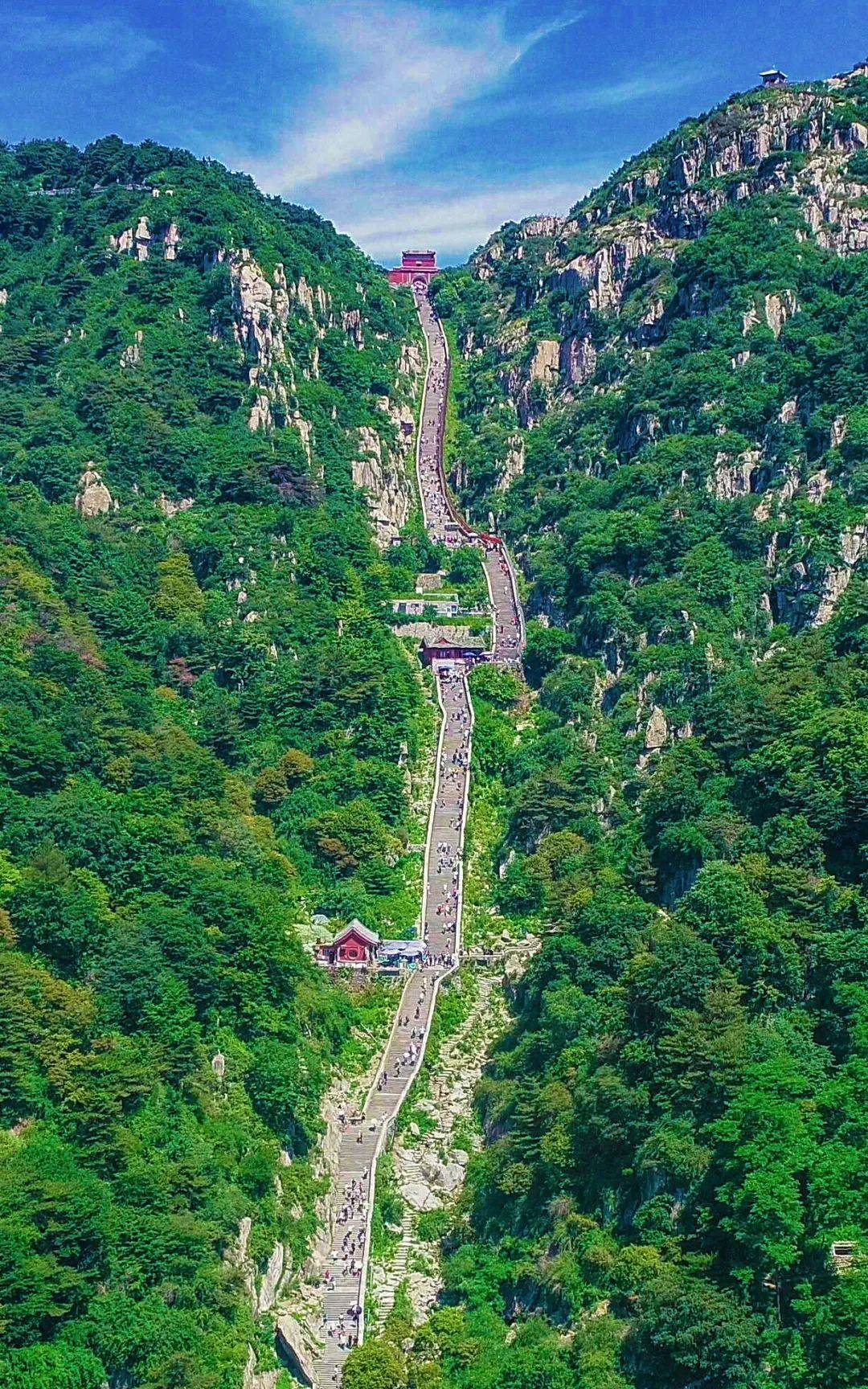 泰山,又称岱山、岱宗、岱岳、东岳、泰岳,位于山东省中部,绵亘于泰安、济南、淄博三市之间。这座山脉东西长约200公里,南北宽约50公里,盘卧面积达426平方公里,主峰玉皇顶海拔1545米。泰山是“五岳”之首,享有“五岳独尊”、“天下第一山”的美誉。