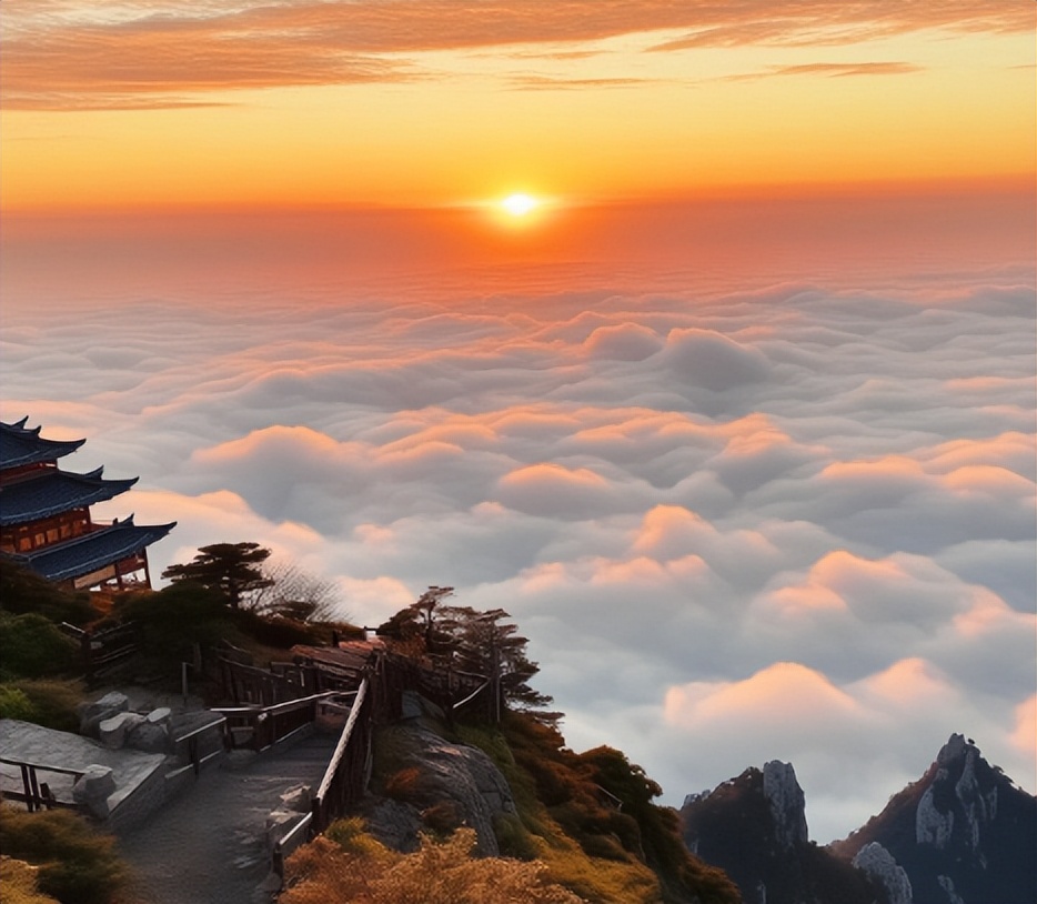 想象一下,凌晨四点的泰山之巅,寒风凛冽,一群裹着厚重棉衣的游客正翘首以盼。当东方天际逐渐由墨黑转为鱼肚白,继而染上一抹淡淡的红晕时,人群中开始发出低低的惊叹。突然,一轮红日跃出云海,万道金光瞬间洒向大地,将整个泰山笼罩在神圣的光辉之中。这就是被誉为“泰山四大奇景”之首的泰山日出,每年吸引着无数游客彻夜攀登,只为目睹这震撼人心的瞬间。