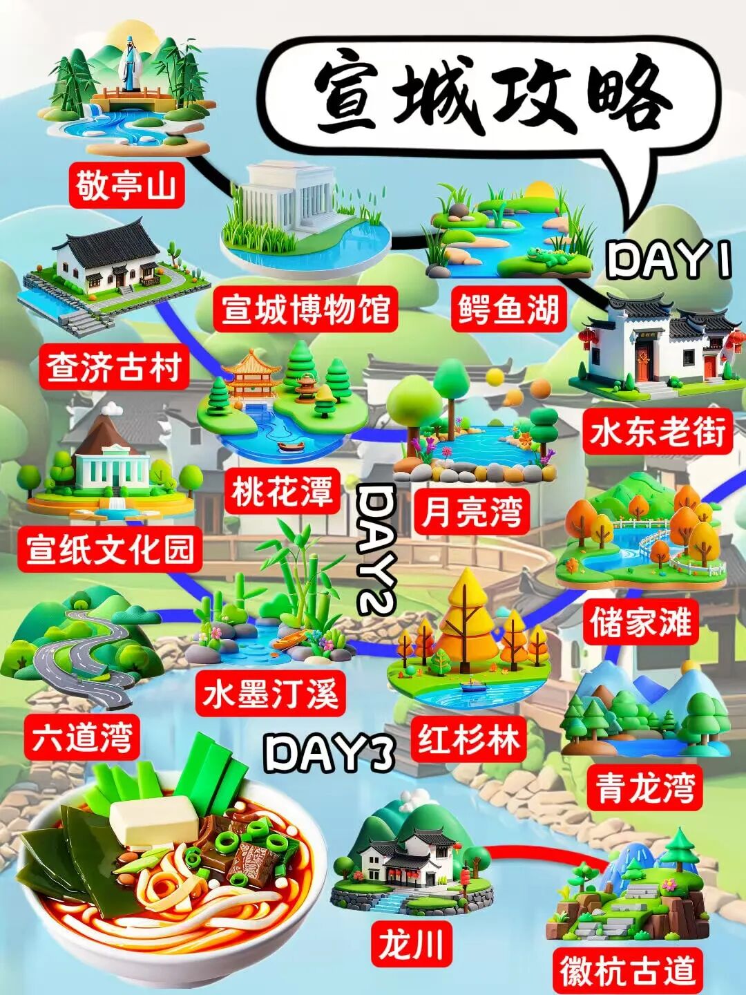D1:敬亭山风景区 → 谢朓楼 → 中国鳄鱼湖 → 宣城市区