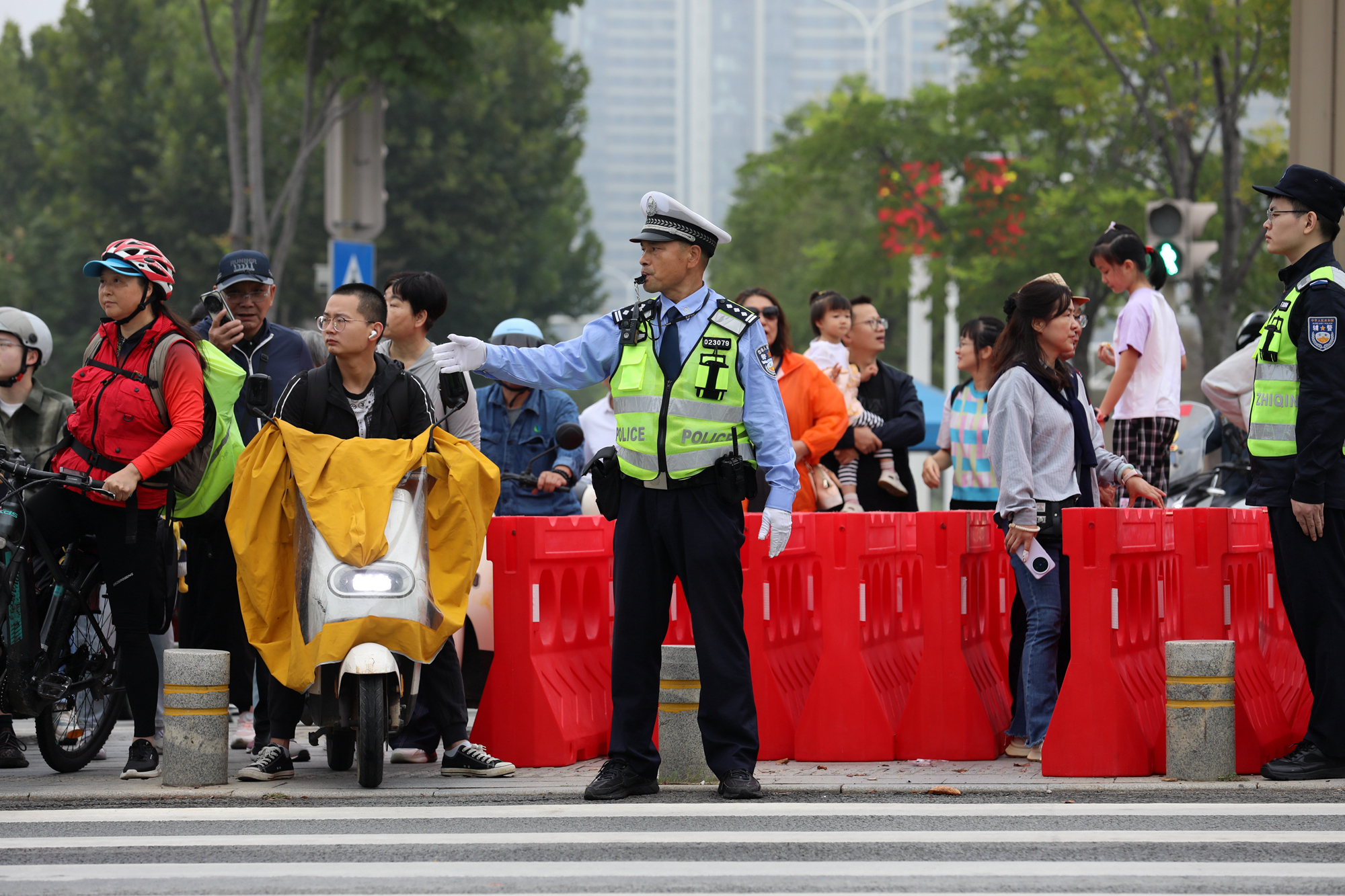 幕后工作也一点没闲着。隔离墩摆得牢不牢?临时指示牌看得清不清?负责路面设施的同志来回巡查,就怕哪个细节没到位。