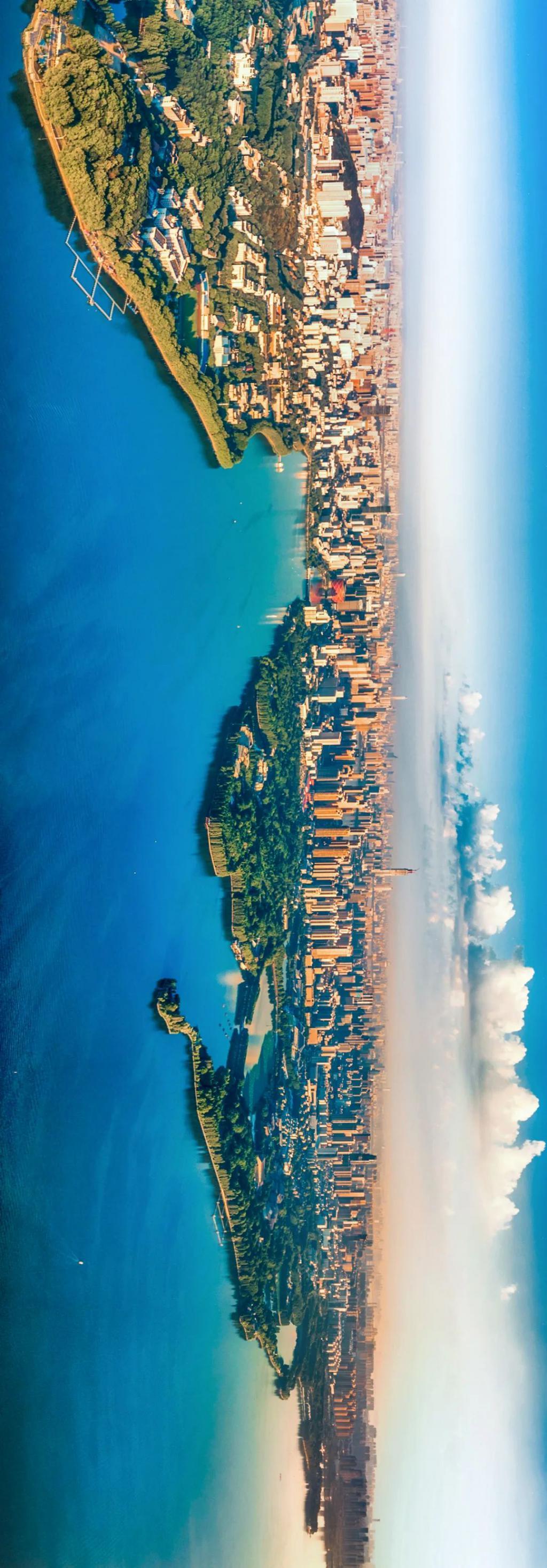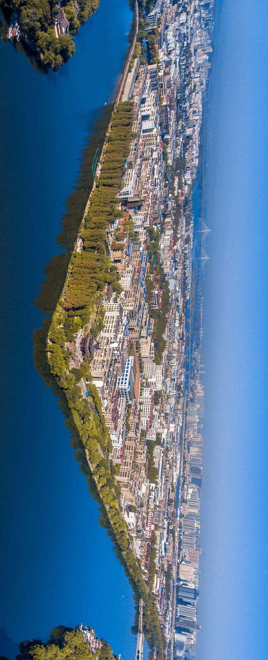 (请横屏观看,武汉鸟瞰,水面为东湖,摄影师@陶进)