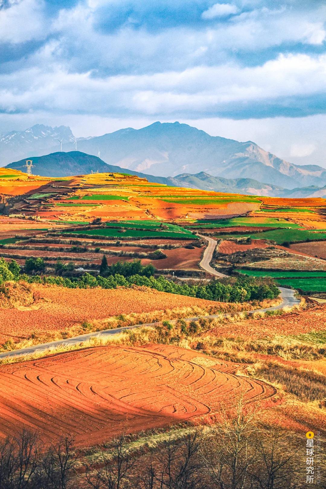 或在淋溶作用下令铁元素在土壤中富集、沉淀、氧化形成色彩明艳的红色大地(东川红土地,摄影师@范峻川)▼