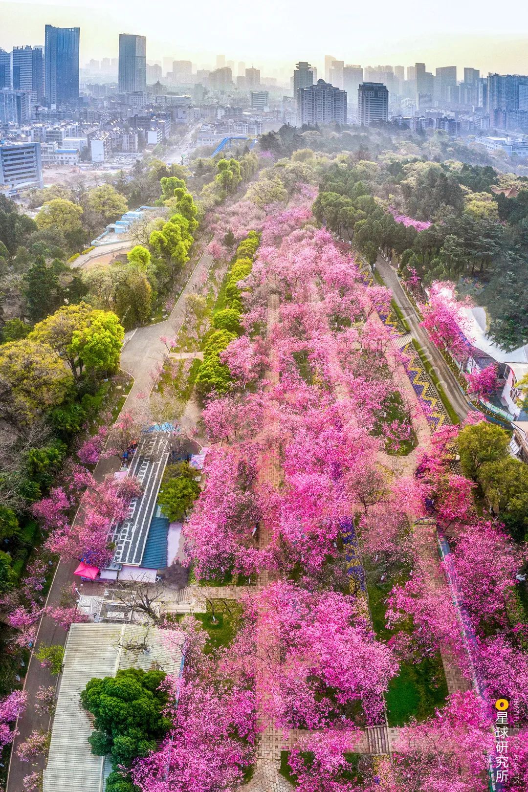 于是在这里不仅一年四季都有鲜花盛放正所谓“天气常如二三月,花枝不断四时春”(上文引自明·杨慎《滇海曲》;下图①圆通山的樱花,摄影师@卢思璇;②晋宁昆阳街的蓝花楹,摄影师@段炳旭;③螳螂川旁的向日葵,摄影师@郑益)▼
