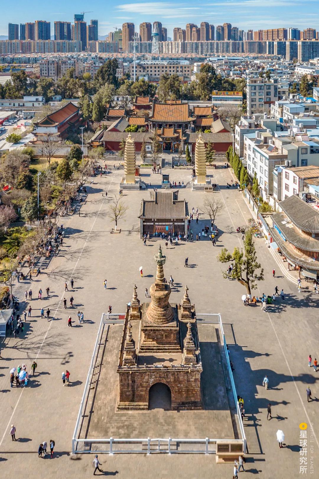 此时的昆明不同宗派的佛教“汇聚一堂”各色佛塔寺庙遍地开花(官渡古镇妙湛寺前,建于同时期的双塔和金刚塔,摄影师@卢文)▼