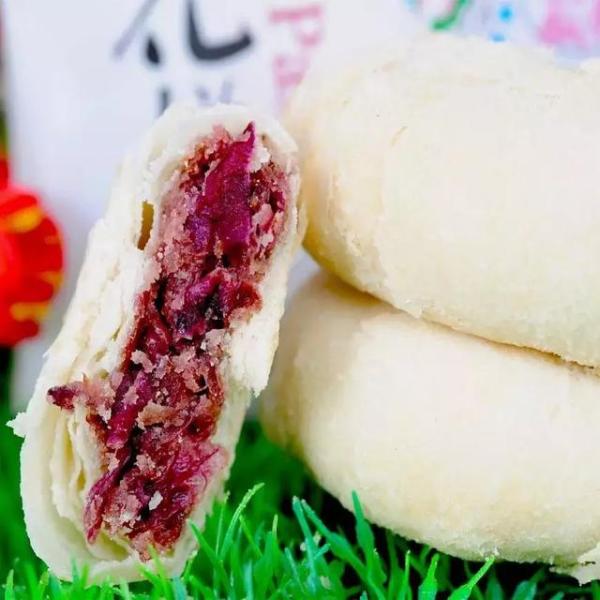 美丽的玫瑰花瓣和酥脆的香饼结合在一起,真的超级美味!饿的时候吃上一块,充满了满足感。一口咬下去就是红色的馅儿,口味非常独特,你吃过吗?还有玫瑰馅的月饼,都很好吃!