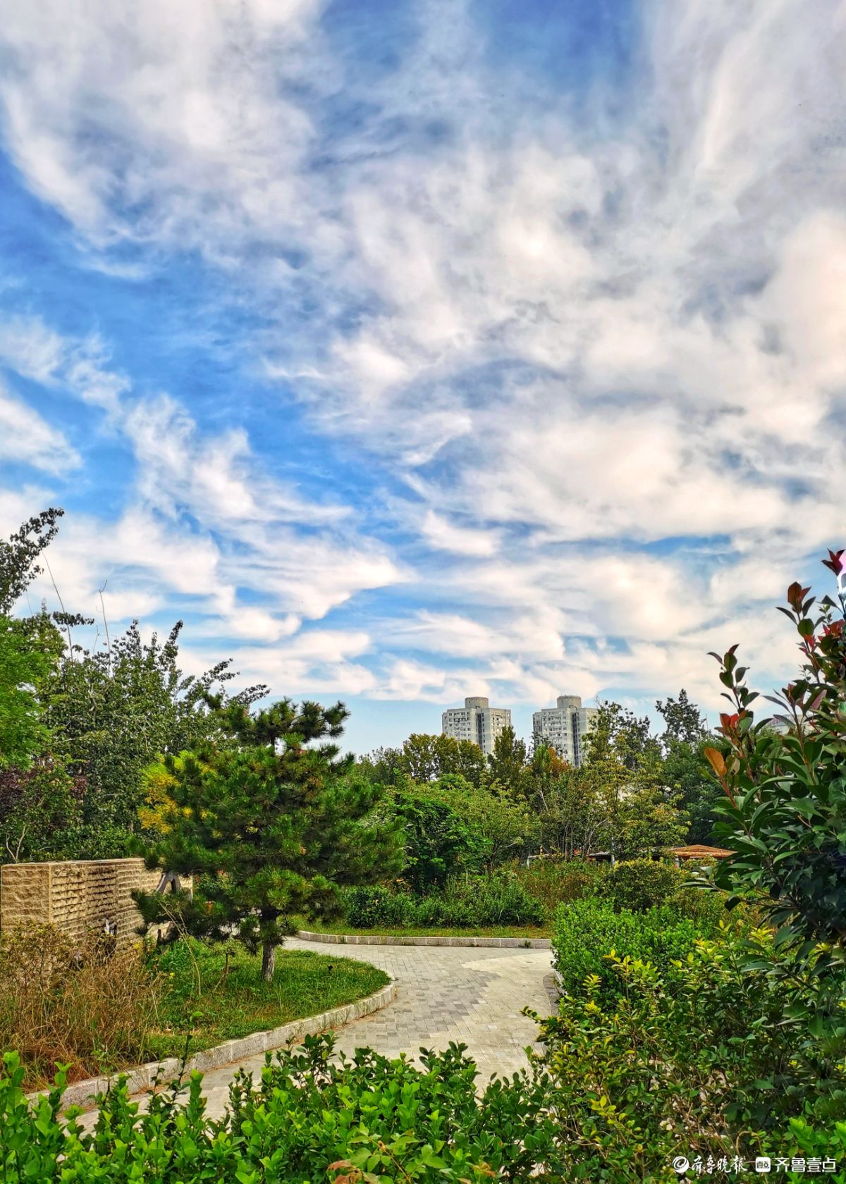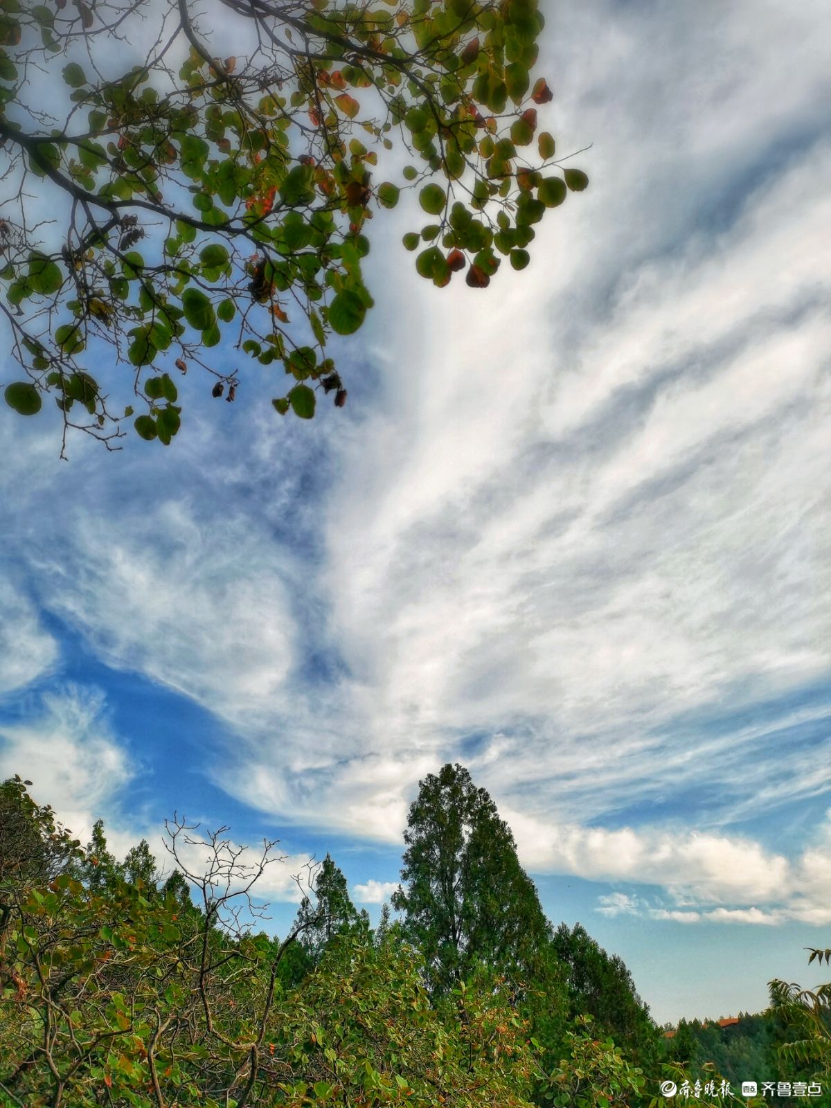 蓝天如洗,像一块巨大的、清澈的蓝宝石,高悬在空中。几朵洁白的云彩悠闲地飘浮着,为这片秋色增添了几分飘逸和宁静。