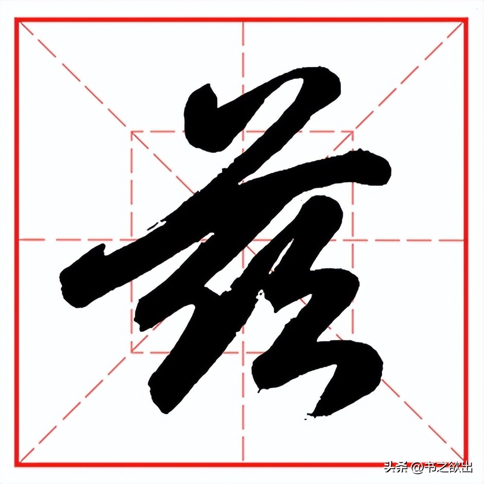 上部两个点笔左低右高,笔意相连,互相呼应。注意两点的距离不宜过远,略呈合抱之态;横画起笔露锋,向右抗肩上行,压撇点的收笔而过,过点笔后行笔勿长;下面“幺”部起笔稍靠左,落笔后即转锋向左下行,行笔略轻,稍带弧度,行笔到位后再折笔向右,勿长;下面撇折撇身角度稍直,行笔到位后笔锋往左带然后顿笔向右写提,出锋勿长;点笔挡住提画的收笔,紧凑收敛,角度稍立,以让右部。