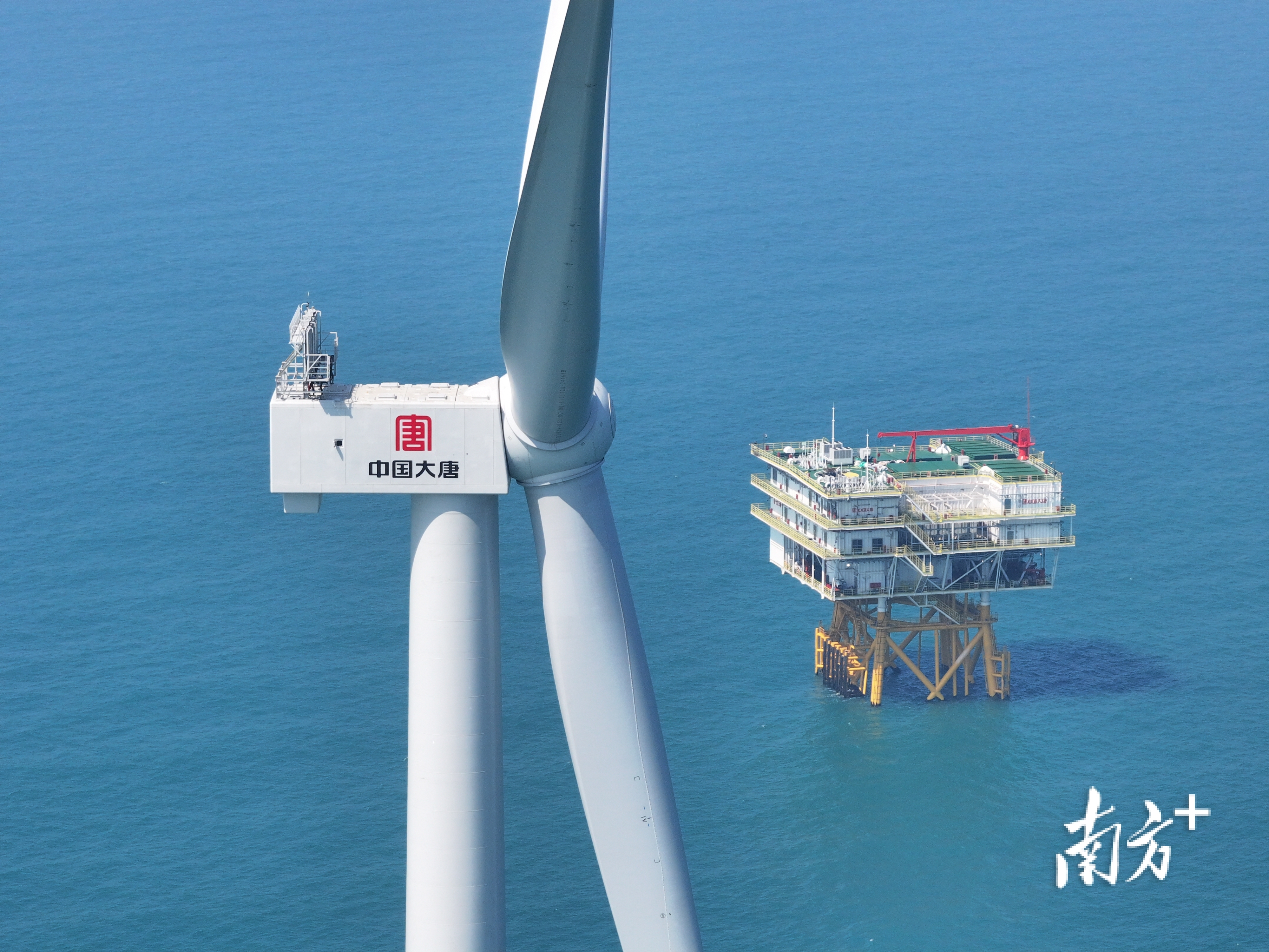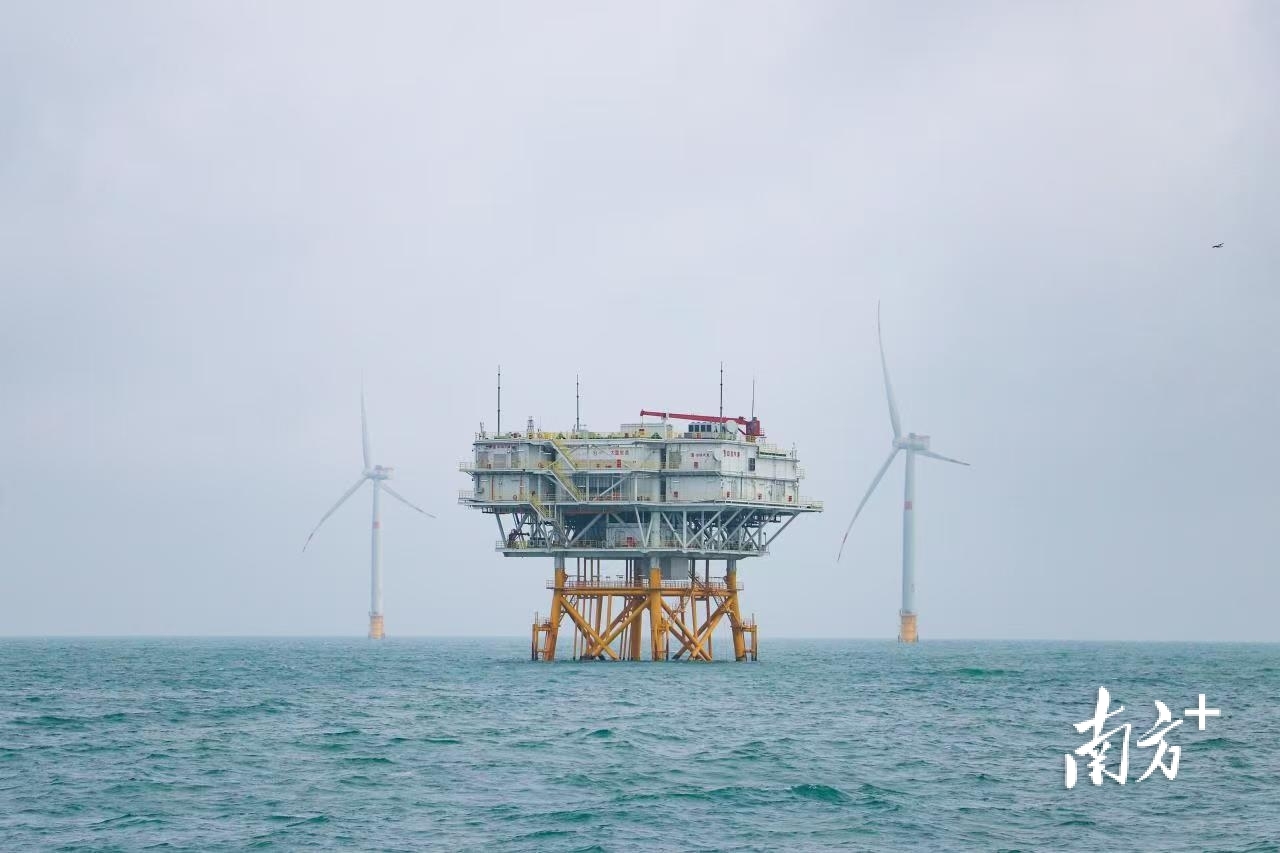 大唐南澳勒门Ⅰ项目海上升压站将风能转化为电能。
