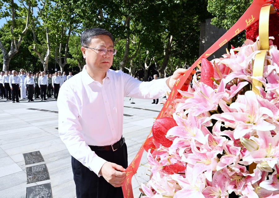 “上海是中国共产党的诞生地,有着光荣的革命传统。”上海市委书记陈吉宁在向抗战先烈敬献花篮仪式上讲话指出,88年前,“八一三”淞沪会战全面爆发,广大军民同仇敌忾、众志成城,依靠顽强意志浴血奋战一百多天,涌现出“八百壮士坚守四行仓库”“姚子青营誓死保卫宝山城”“罗店血肉磨坊”等英雄事迹,极大鼓舞了全民族抗战的必胜信念,极大振奋了以爱国主义为核心的伟大民族精神。