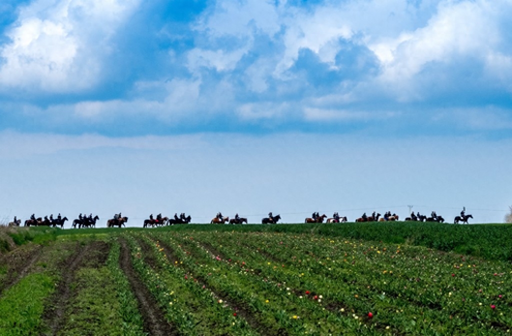 “骑马祈丰收”是一种富有仪式感的传统农耕活动,尤其在一些以农牧业为主的民族或地区比较常见。它通常与特定的节日(如春耕开始前、祈求风调雨顺的祭祀活动等)相关联。