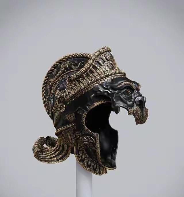 王权的象征临摹在器物中。比如古埃及法老图坦卡蒙的黄金皇冠,镶了宝石、用了珐琅,金光和工艺难分彼此。法国亨利二世的金手套,是防护,还是展示权力?金光灿烂的花纹压根儿就不怕被忽略。