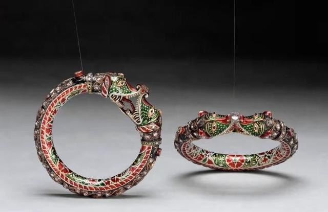 印度在十九世纪的金手镯,细节精致,还加了各种神话中的生灵图案,不光是装饰品,更在一点一滴里体现手艺人追求的极致。大教堂的脚形圣物匣子,装饰得重重叠叠,银、铜、金、宝石、琉璃挨个用上,藏着无数匠人的心血。
