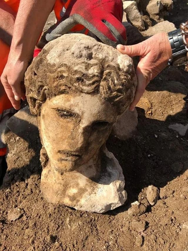 在罗马发现的一尊新的帝国时期(罗马帝国时期)人物头像。这尊头像可能属于某位罗马皇帝或贵族,面部轮廓清晰,发型和胡须样式具有鲜明的时代特征。