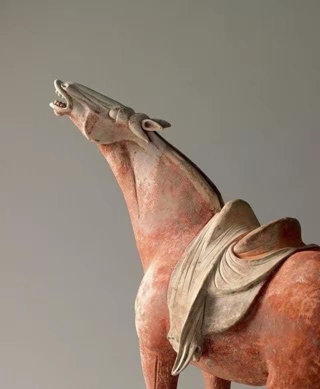 唐朝也有金龙和“嘶鸣之马”的雕塑,马昂着头嘶叫的样子,好像能听到声音一样。
