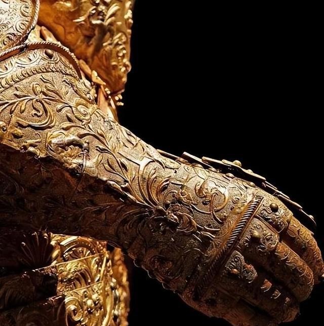 法国国王亨利二世有副盔甲,其中一只金手套是1550年做的。整个手套都是黄金的,上面刻满了花纹,这哪里是用来打仗的,分明是艺术品。