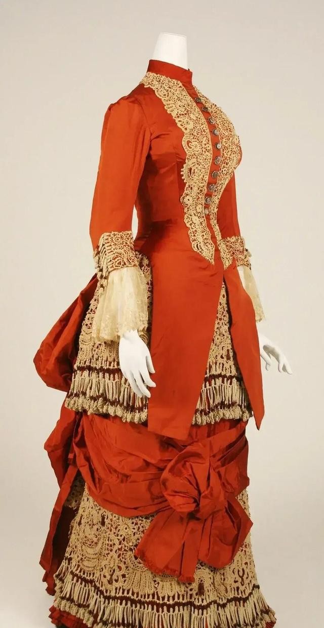 还有一件1880年的美国连衣裙,丝绸和棉做的,那裙子的样式,现在看着也不过时,很多复古风潮好像就是学的它。