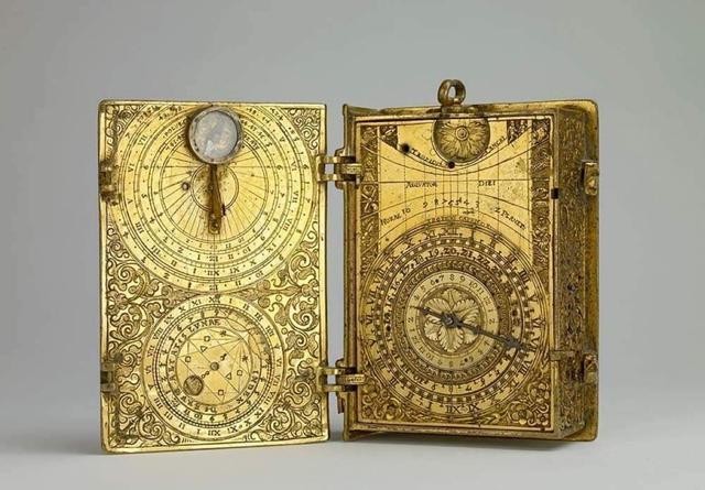 不光是玩的,还有用的。1580年有一台钟,外面是镀金黄铜,做成了一本书的样子。它不光能看时间,还有月相图、日晷,甚至还能当闹钟用。