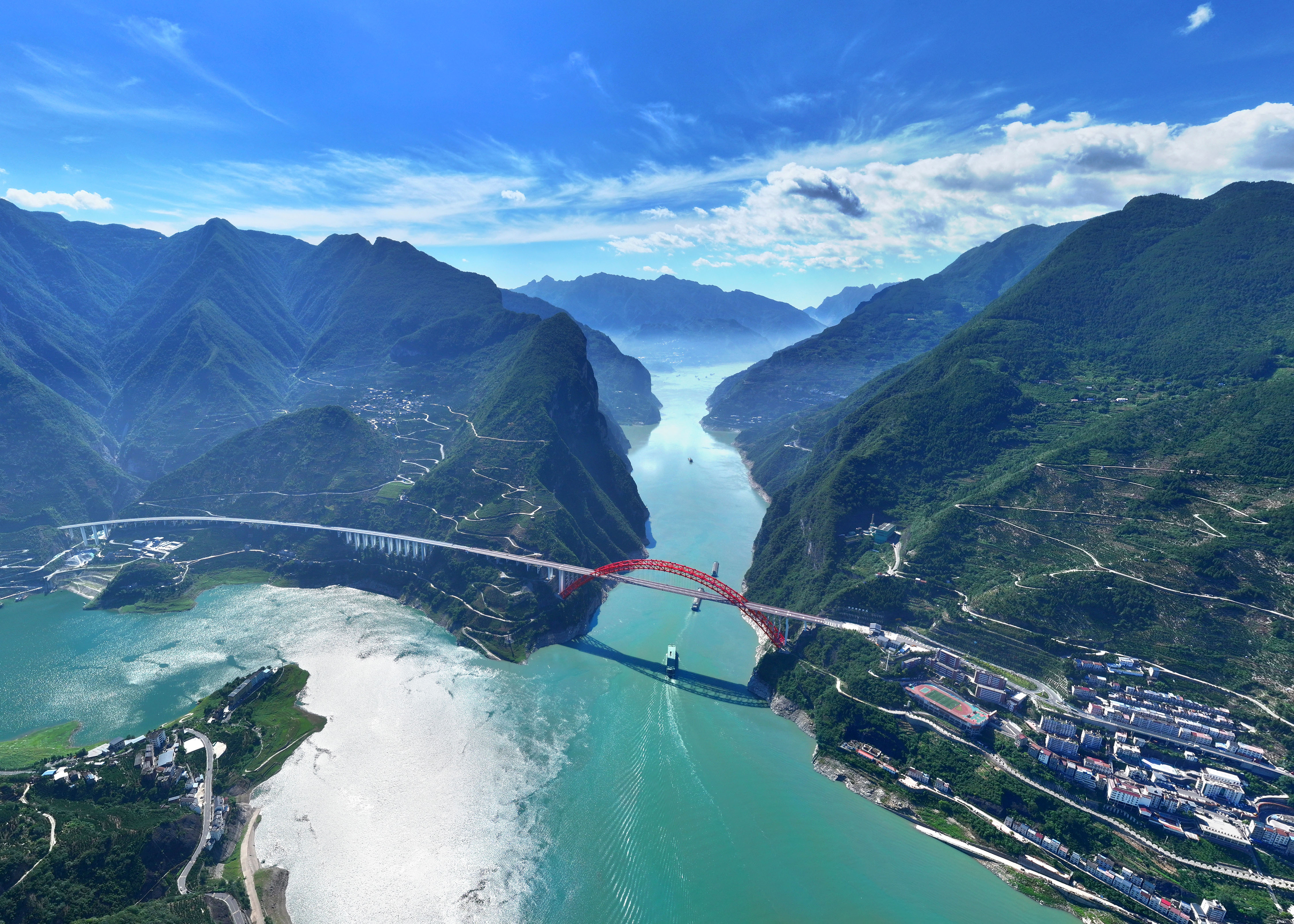 三峡库区湖北宜昌秭归县,船舶行驶在“一江碧水、两岸青山”的美景之中。郑 坤摄