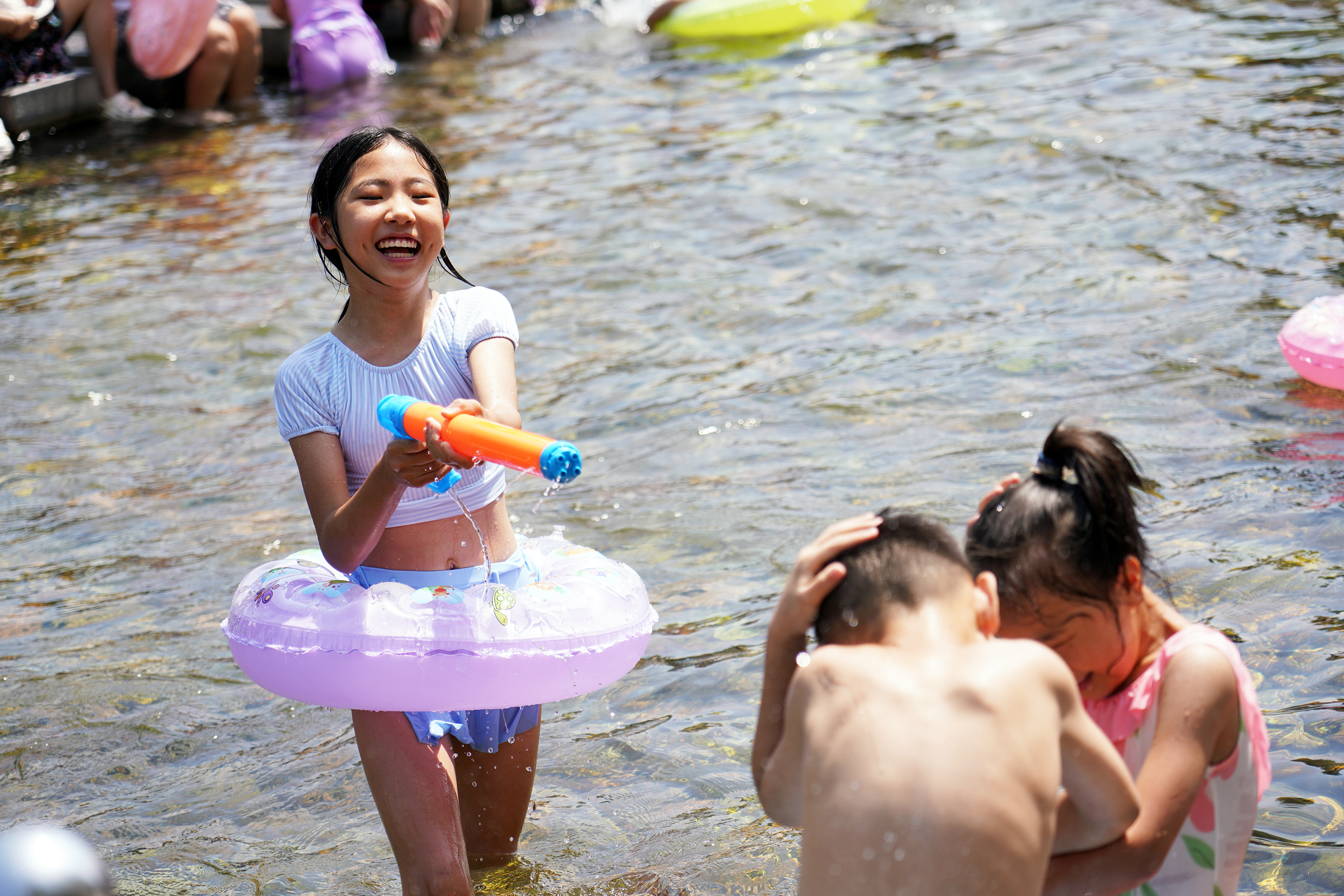 河北邯郸峰峰矿区,小朋友在滏阳河戏水区欢快玩耍。李 栋摄