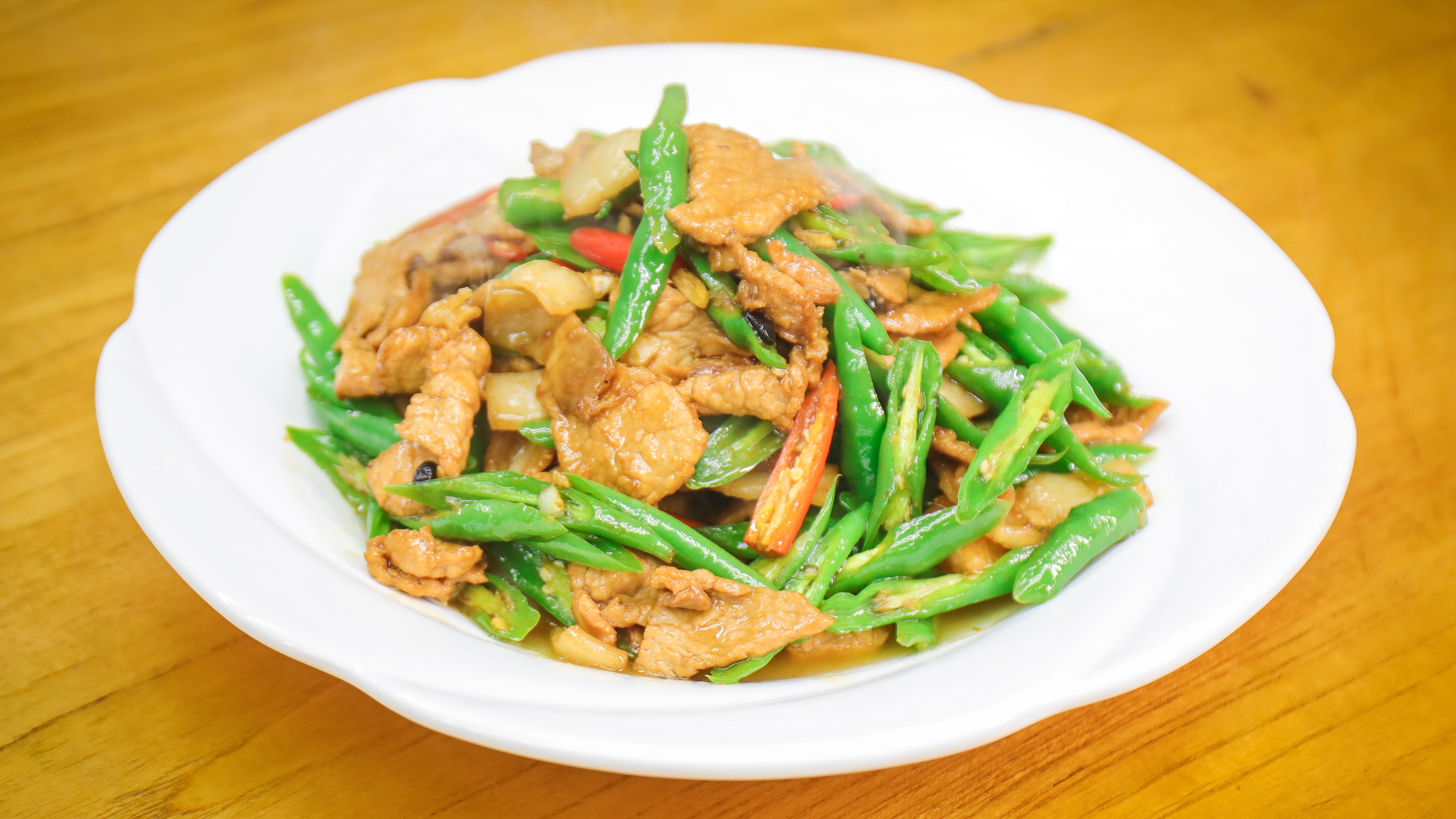 小炒肉想要好吃,有肥有瘦才香。瘦肉占七,肥肉占三分,炒出来的菜那就一个香,美味可口。