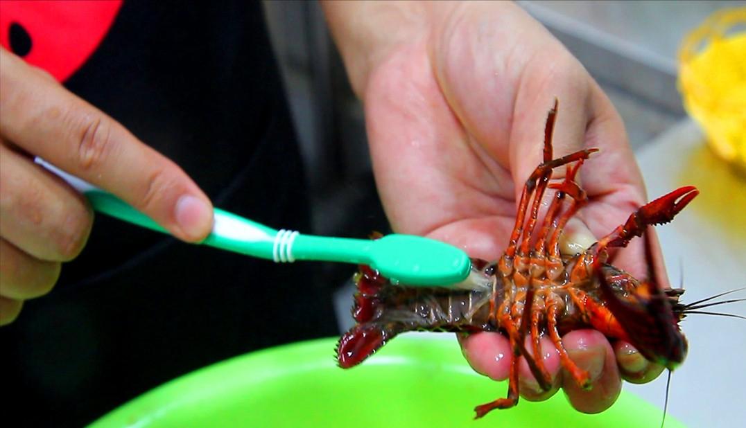 直到最后刷洗小龙虾的水不再浑浊为止。