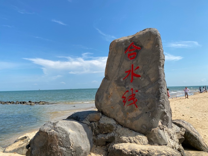 合水线观景平台,极目远眺,眼前是琼州海峡与北部湾海水交汇碰撞的浪漫奇观。蓝绿两色的海水在此缠绵交融,形成一道清晰蜿蜒的分水线,大自然的鬼斧神工令人叹为观止。