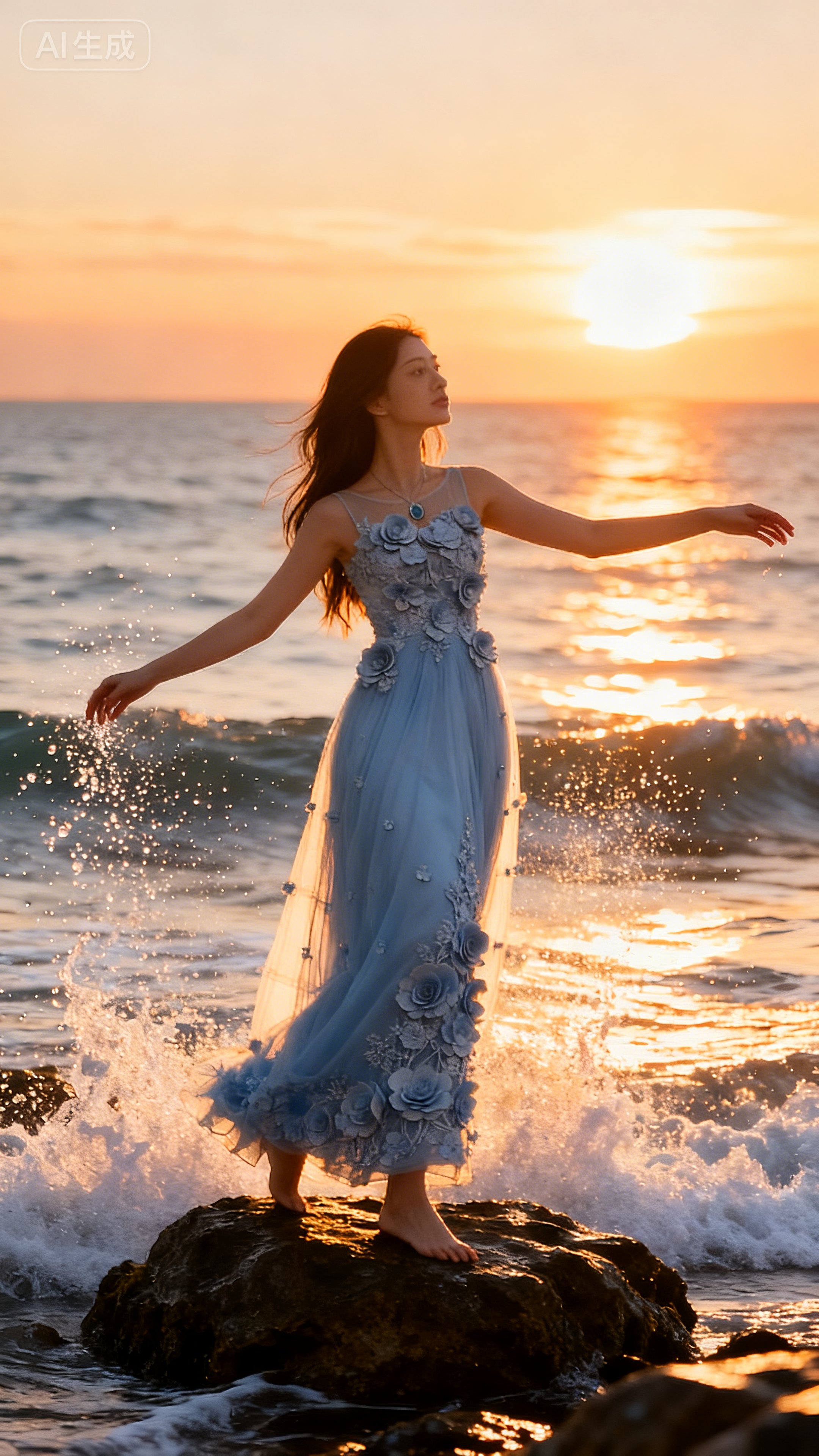 - 在所有框输入以下提示词:让图一中的人物穿上图二的服装,然后帮我生成一系列的艺术写真照,其中的背景环境,人物动作姿态,表情动作等等,由你帮我设计,要有专业级别的光影效果,反正所有的要求要根据摄影楼专业拍摄艺术写真照的标准。生成10张图片。比例9:16。