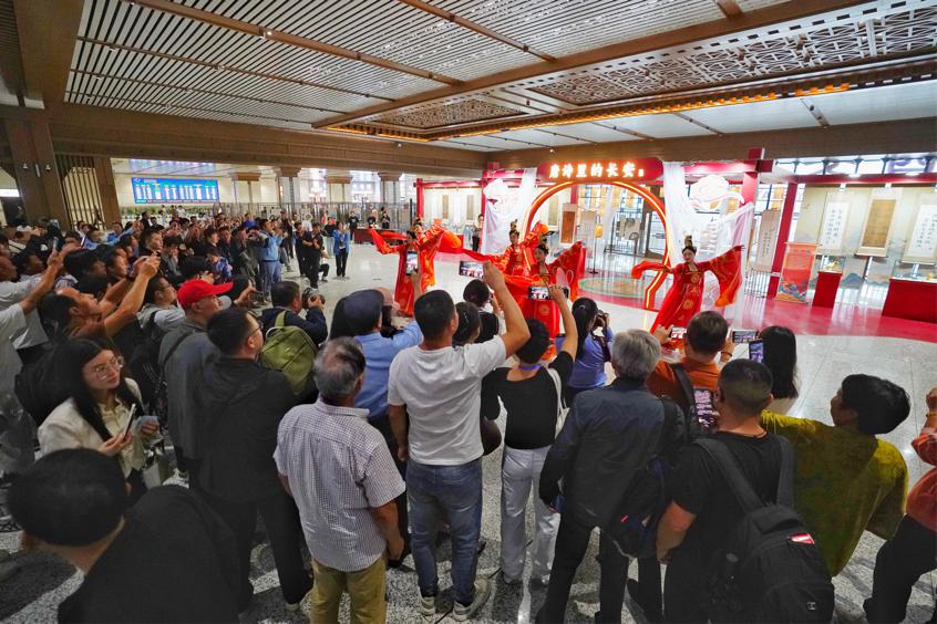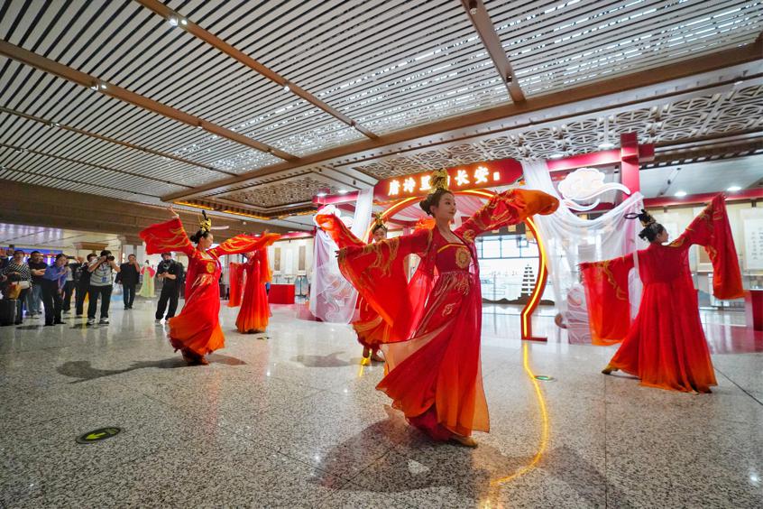 近年来,西安站在文化传承与非遗传播领域持续发力,从引入非遗传承人现场展示皮影、剪纸等传统技艺,到设置“唐诗走廊”让旅客在行走间品读千古名句;从情满中秋的唐乐宫沉浸式演绎,到联合文物局推出“铁路+博物馆”服务,西安站始终以“让文物活起来、让非遗传下去”为目标,将文化融入车站的每一个细节。