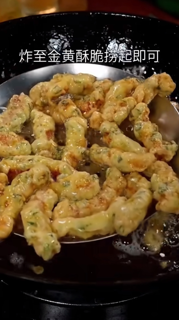 山药斜切片,调个蛋黄、葱花、淀粉的脆皮糊,七成油温炸至金黄,外皮酥脆,内里山药香甜,老人小孩都爱吃!