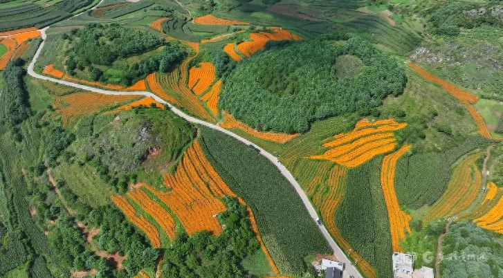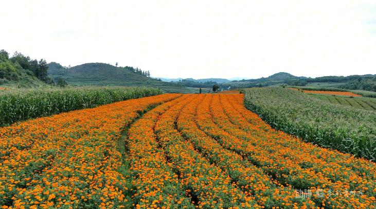 近段时间,毕节市威宁自治县双龙镇五千亩万寿菊摇曳成海,宛如大地上铺展的金色海洋。这些“致富花”正以订单农业为纽带,串联起村民们的致富路。