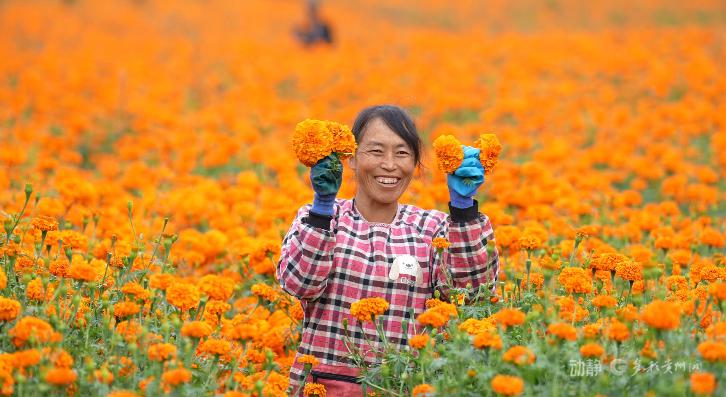 花开了,人来了,日子也跟着明亮起来。不少村民在种完万寿菊后还能续种一季蔬菜,土地不再冬眠,庄稼也不再只有一季收成。