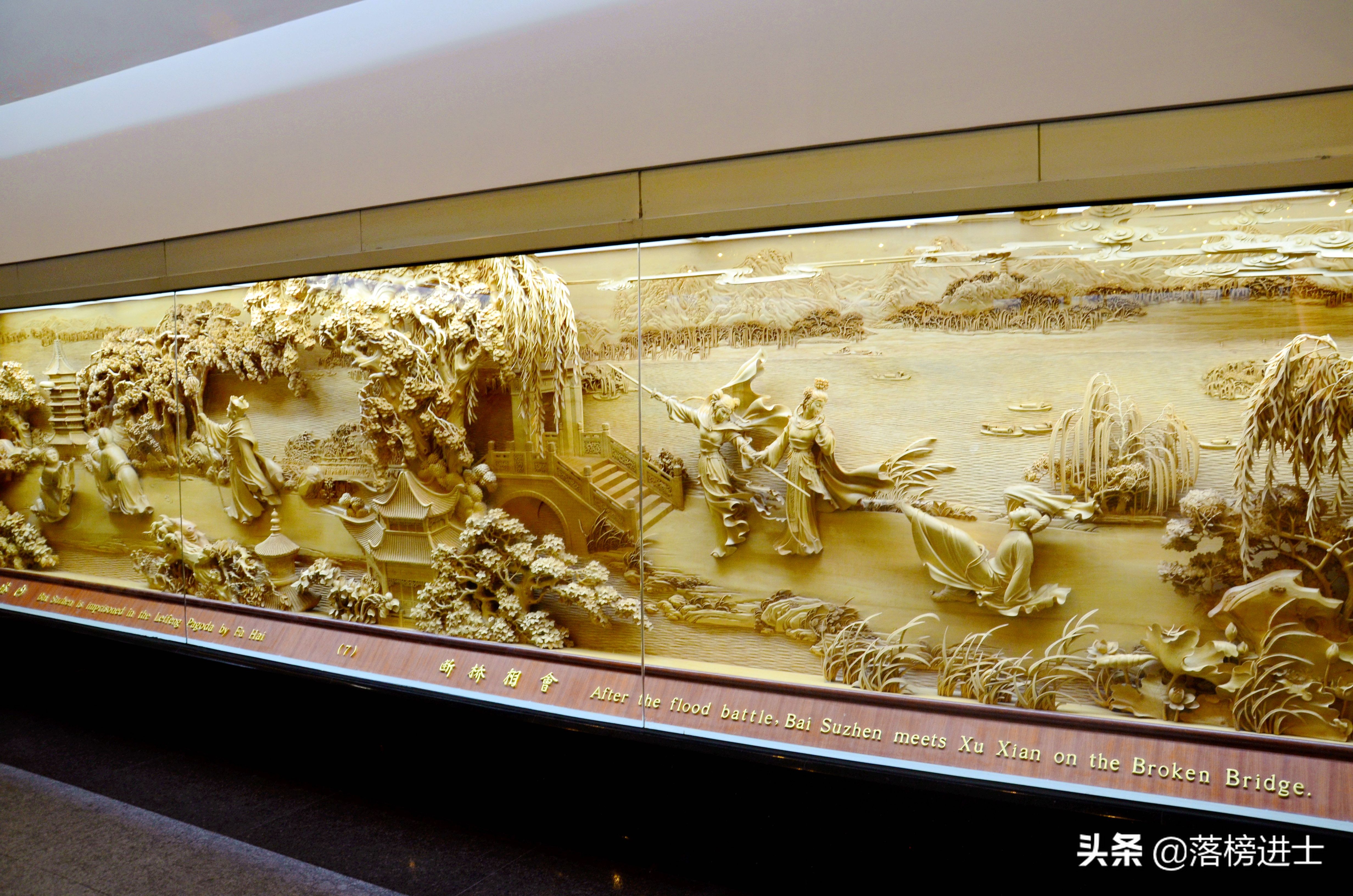 有了鲁迅那篇文章,人们都知道曾经的雷峰塔早已倒塌,如今塔是重修后的,屹立在西湖边上,依然高大宏伟。走入塔中,地下一层是有关雷峰塔的历史记载和遗存文物。登高上塔,俯瞰风光无限好。塔中还有白蛇传的雕刻,栩栩如生。