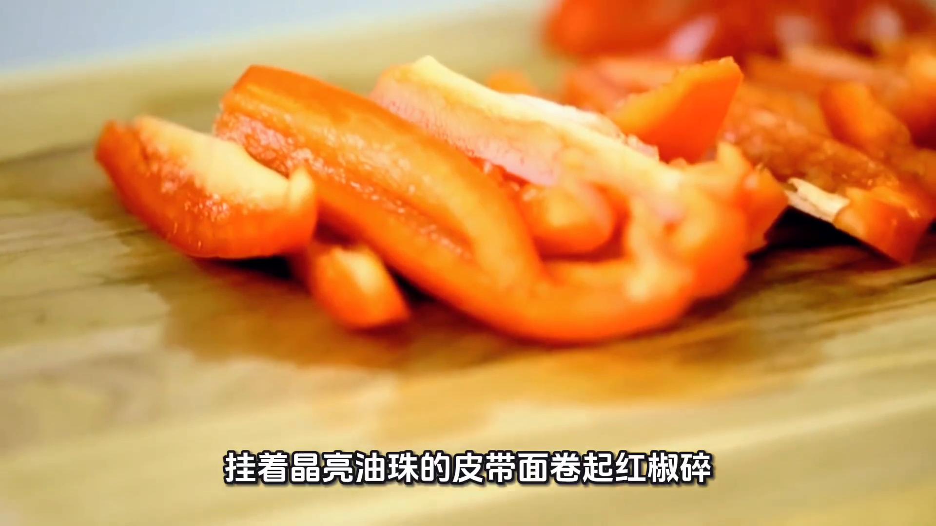 后厨大铁锅窜起的火焰里,青红椒、洋葱和蒜片在羊油里爆出交响乐。金黄的面条刚出锅就撞上酱色透亮的肉片,挂着晶亮油珠的皮带面卷起红椒碎,筷子挑起时能看见油花在面条间隙流淌。咬下去的瞬间,羊肉的野性被番茄酱驯服成温柔的鲜甜,辣皮子给的刺激感又像沙漠里的风拂过后颈。