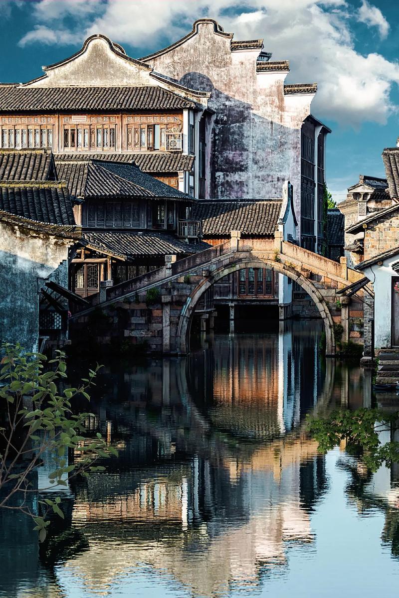 乌镇位于浙江省嘉兴市桐乡,素有“中国最后的枕水人家”之誉。乌镇是江南四大名镇之一,是一个具有六千余年悠久历史的古镇,远离现代城市的喧嚣与躁动,它更像是一幅水墨山水画。白墙、黛瓦、小桥、流水,枯藤老树昏鸦,小桥流水人家,乌篷船摇荡着静谧的时光。乌镇被分为四个区块,当地人分别称之为“东栅、南栅、西栅、北栅”,其中开放西栅和东栅为旅游景区。同样位于嘉兴的西塘古镇也十分值得一去,西塘的长廊、古弄、石桥和古宅是颇值得品味的地方,小小的古镇被小河一分为二,眼到之处,皆可成景。